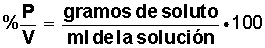 Porcentaje peso a volumen (% P/V): indica el número de gramos de soluto que hay en cada 100 ml de solución.
